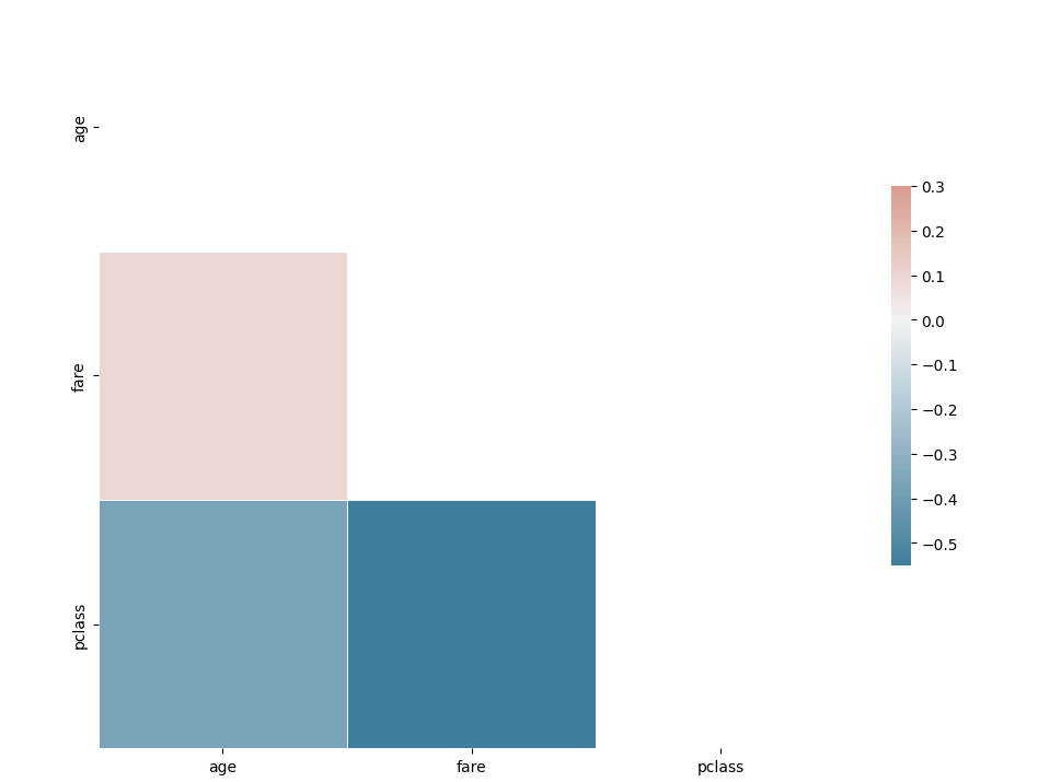 corr = df[['age', 'fare', 'pclass']].corr()